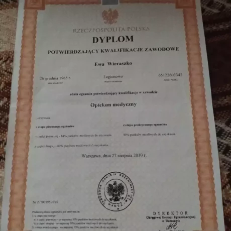Mam doświadczenie ok 25lat pracowałam w szpitalu i na rehabilitacji neurologicznej,a także w domu pacjenta,hospicjum onkologiczne,jestem opiekunem medycznym z dyplomem.obsluguje pega, sondę,aparatura do żywienia pozajelitowego a także wymianę worka Specjalizuje się w chorobach neurologicznych a także nowotworowych
